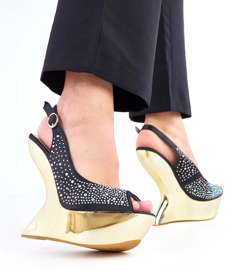 Czarne sandały z cyrkoniami na futurystycznym koturnie Tejla
