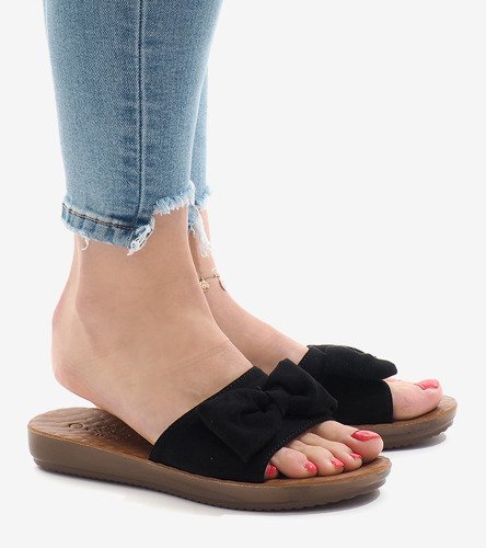 Czy można dobrać klapki damskie do casualowej, sportowej lub eleganckiej odzieży? Delikatny i subtelny model z kokardą w czarnym kolorze to najlepszy dowód, że to wcale nie jest skomplikowane. Jest to idealna alternatywa dla sandałów, które niekoniecznie mogą do wszystkiego lub każdemu odpowiadać.