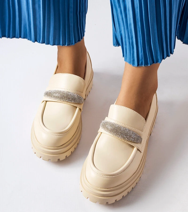 Beżowe mokasyny ozdobione klamerką Schlanders