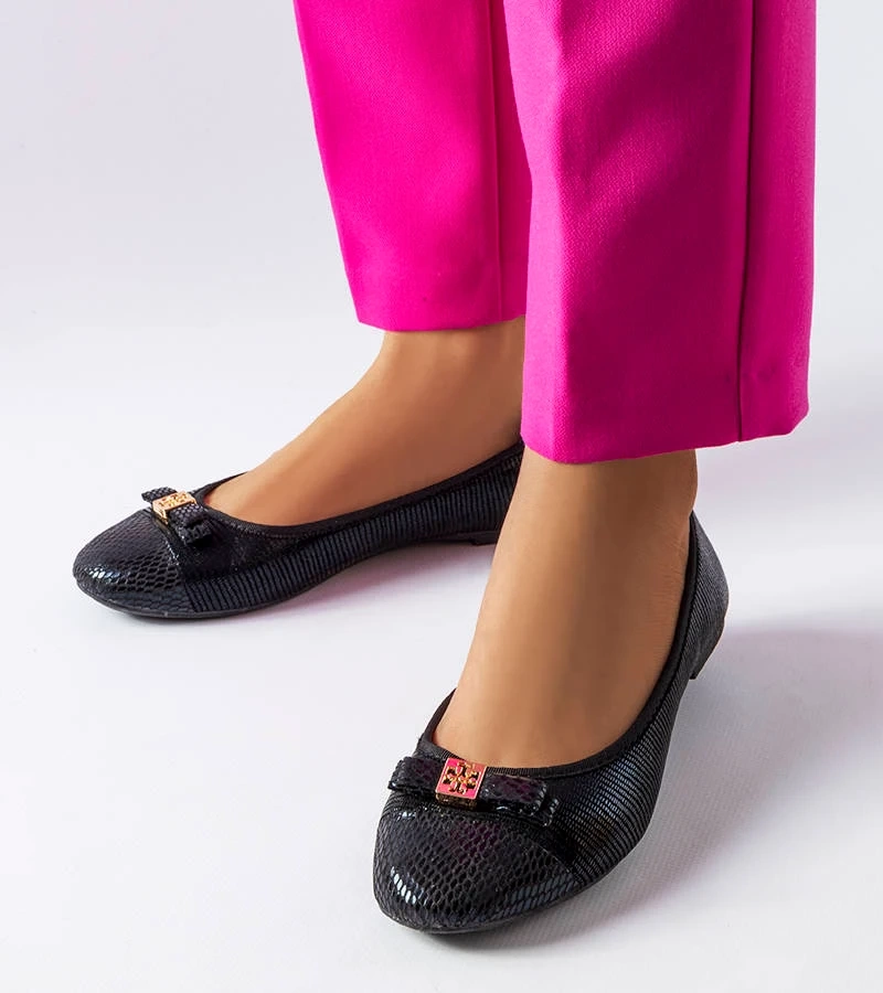 Czarne baleriny z kokardką i cyrkoniami LaGarde
