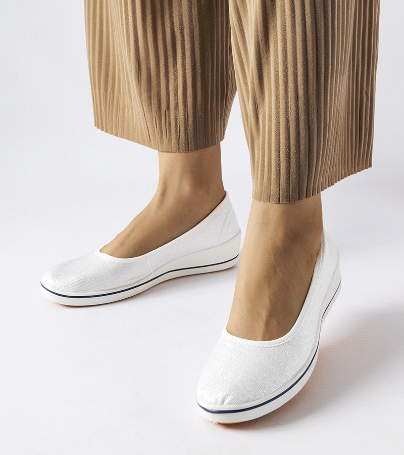 Białe damskie balerinki z kokardką Leronis