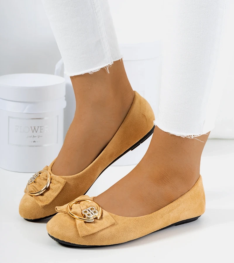 Beżowe balerinki zdobione kokardką i broszką Esdras