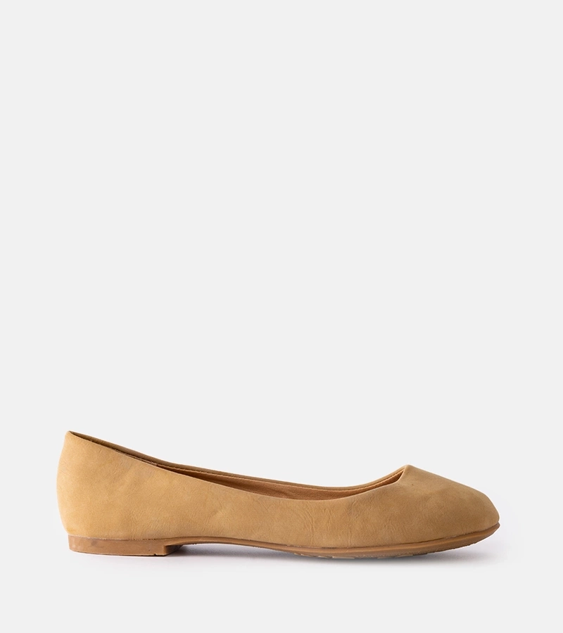 Beżowe balerinki z lakierowanym noskiem Despins