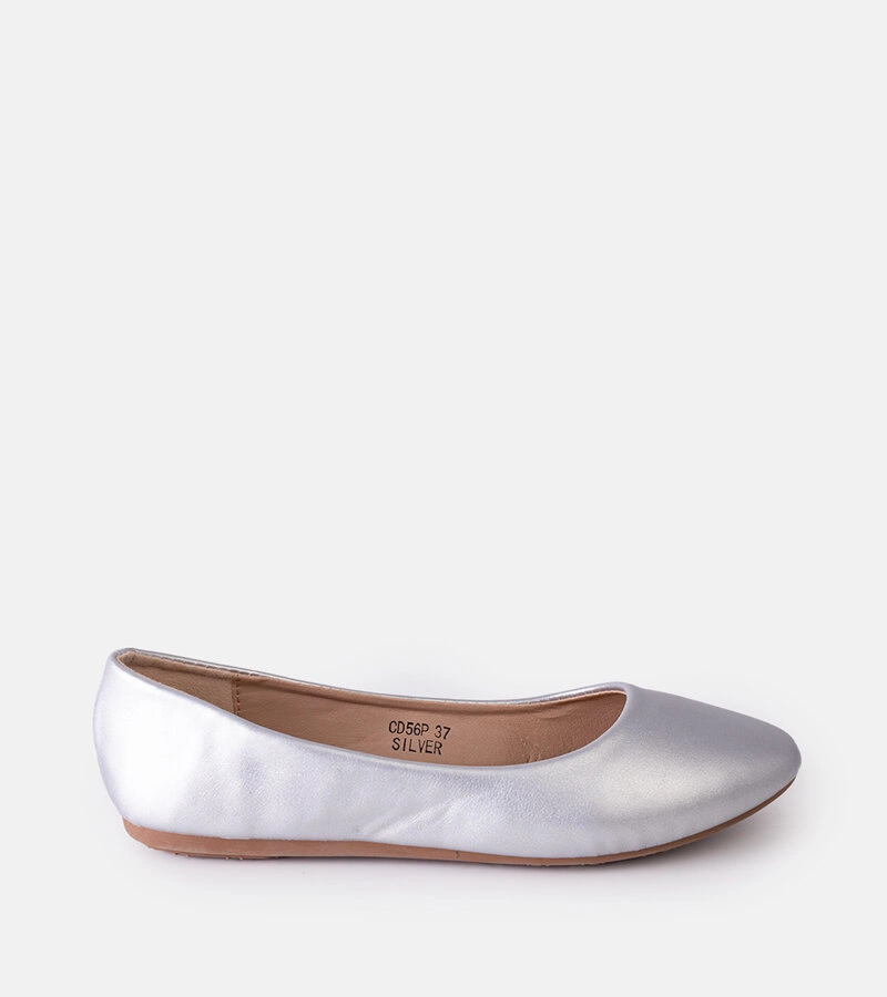 Srebrne baleriny na niskim obcasie Siciliano