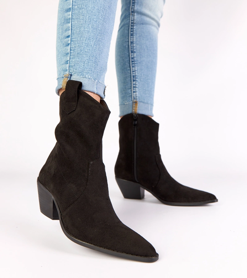 Czarne botki na słupku z ekozamszu Mirmi