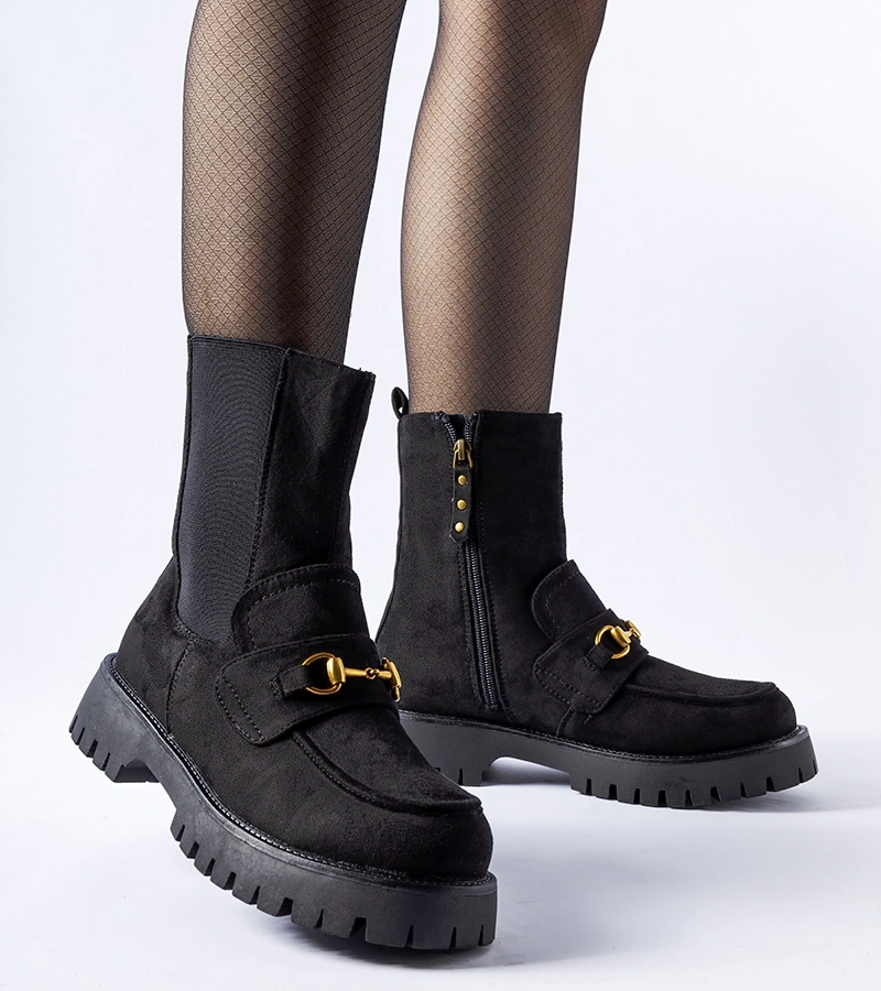 Czarne botki z ozdobnym suwakiem Emarese