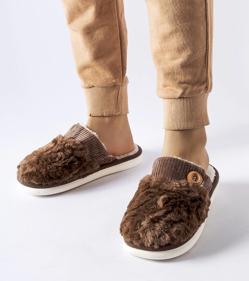Brązowe ocieplane kapcie z pomponem Marchetti