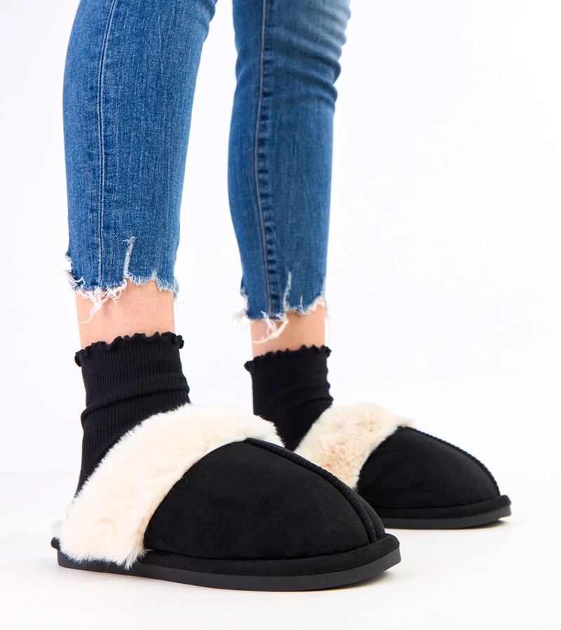 Czarne klasyczne klapki na słupku z ekozamszu Risana