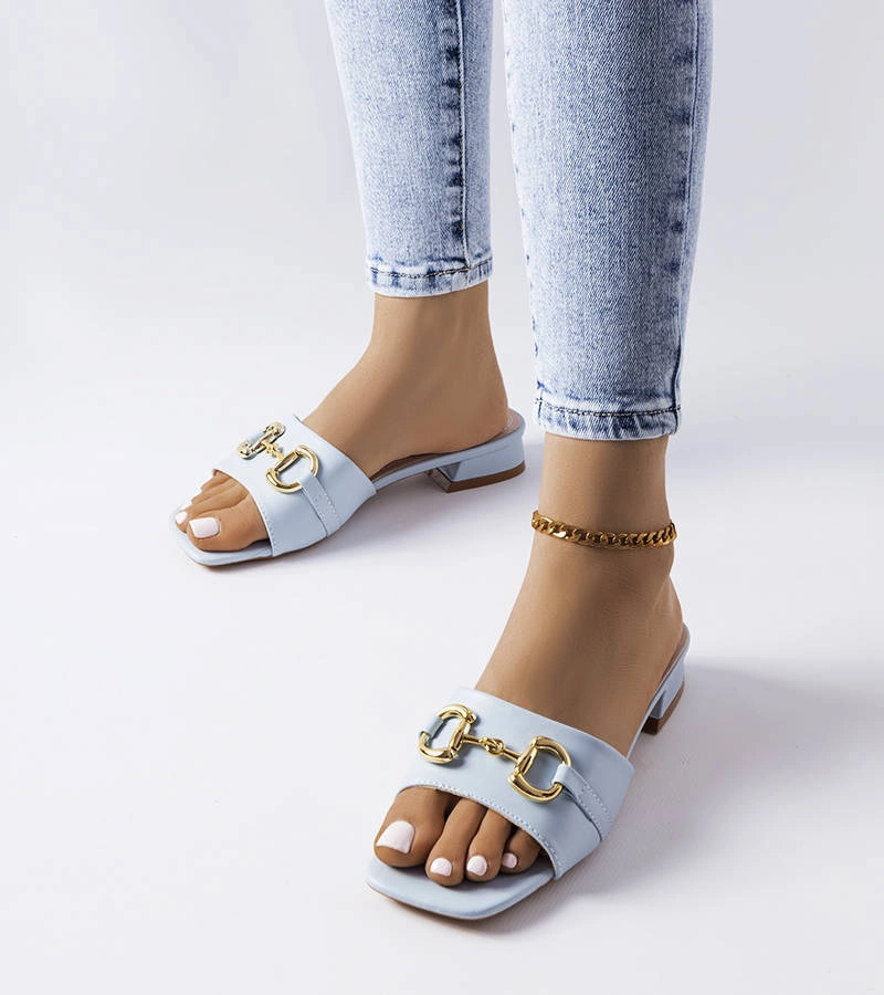 Niebieskie klapki z łańcuchem na obcasie Chabot