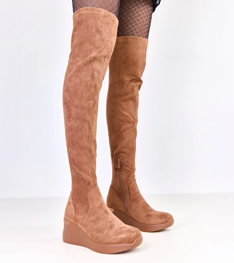 Karmelowe kozaki na koturnie Cascia