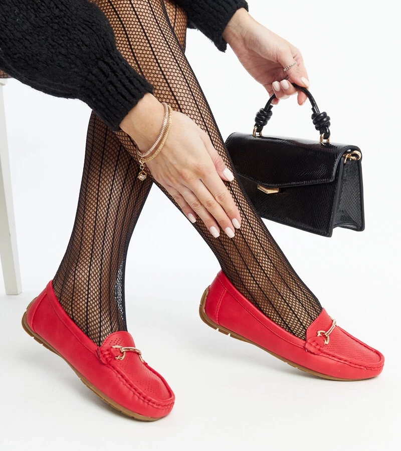Czerwone mokasyny z ozdobną klamerką Adila