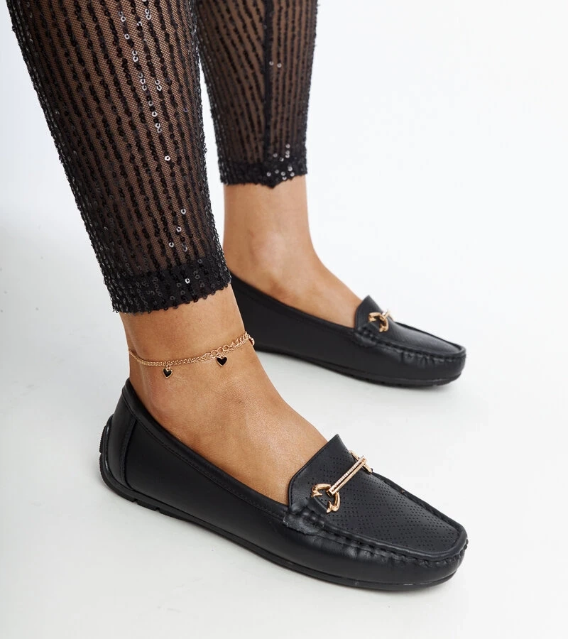 Czarne mokasyny z ozdobną klamerką Adila