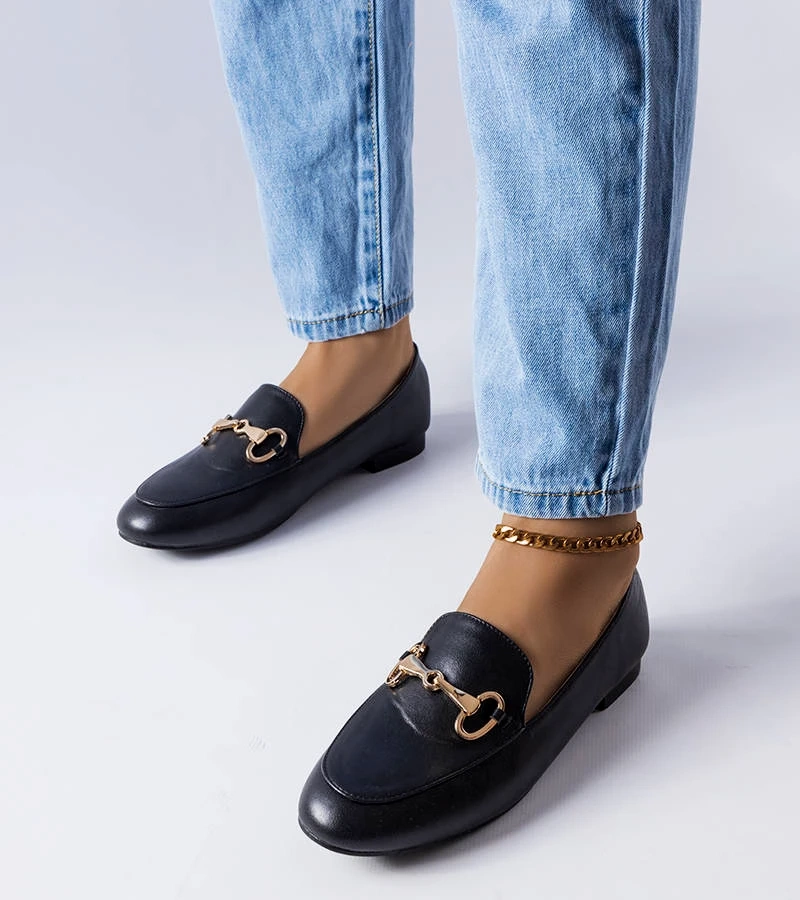 Czarne eleganckie mokasyny z ozdobą Ouellet
