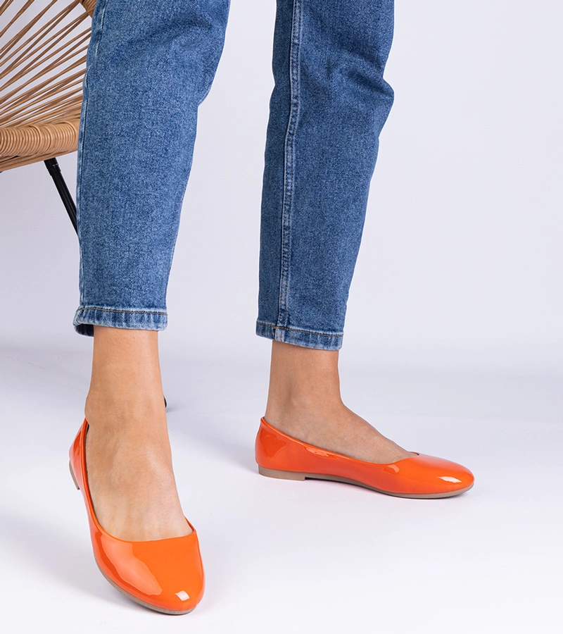 Beżowe balerinki lakierowane zdobione klamrą Furseda