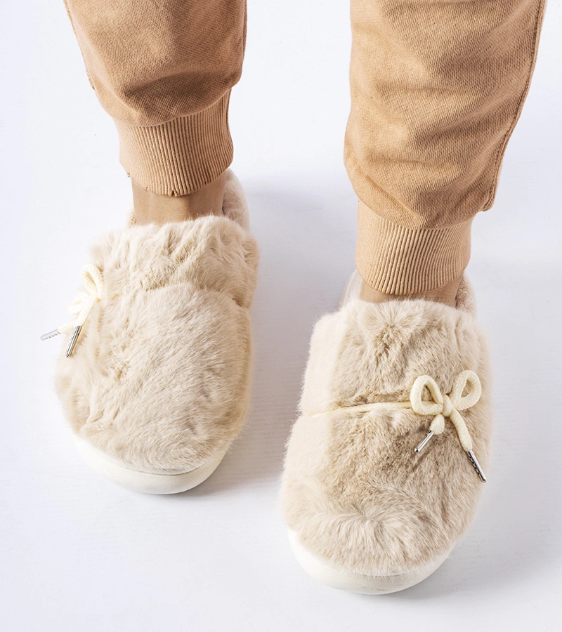 Beżowe ciepłe kapcie z zakrytą piętą Aurelio