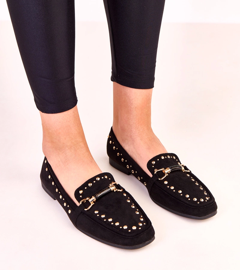 Czarne balerinki zdobione klamrą z krysztalikami Demetra