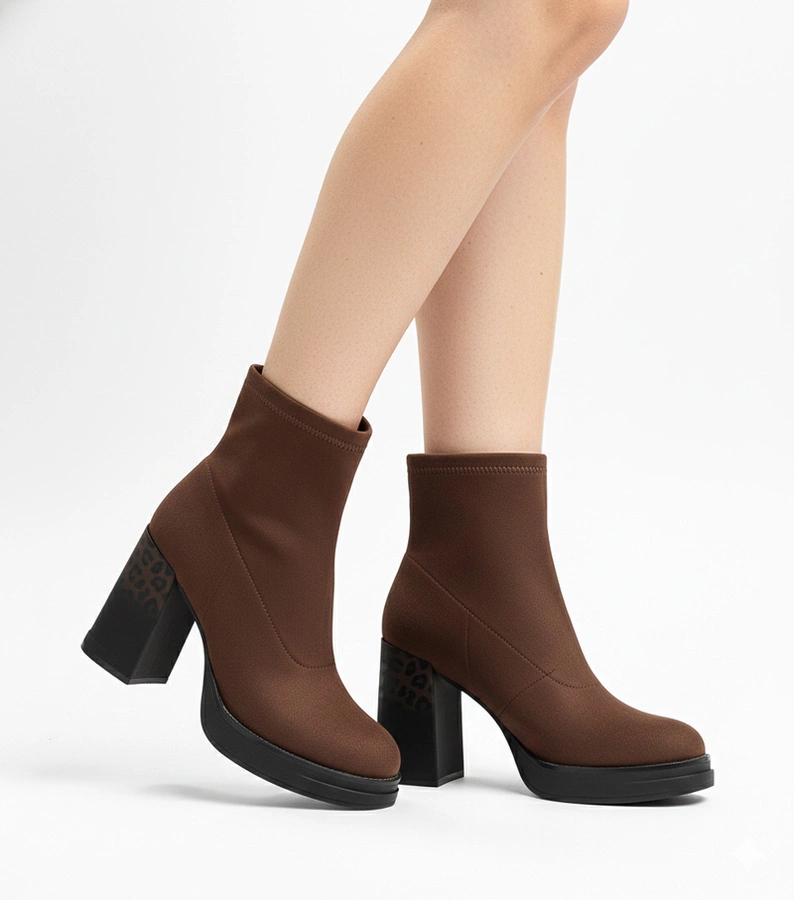 Brązowe botki na słupku z elastyczną wstawką Jarley