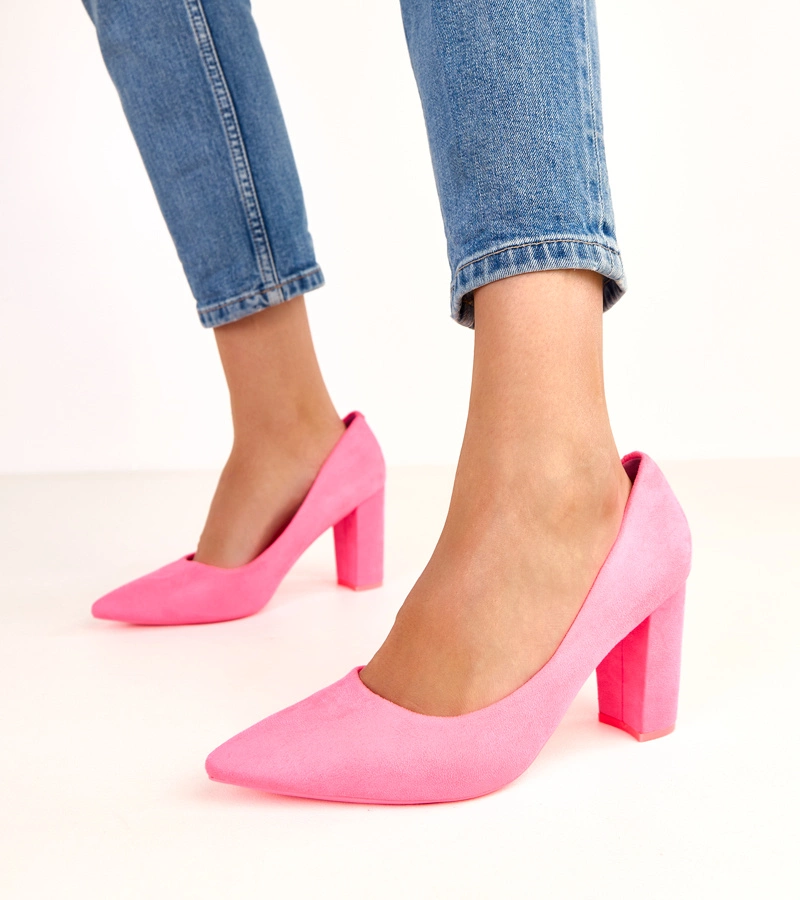 Różowe czółenka damskie z ekozamszu Wallos