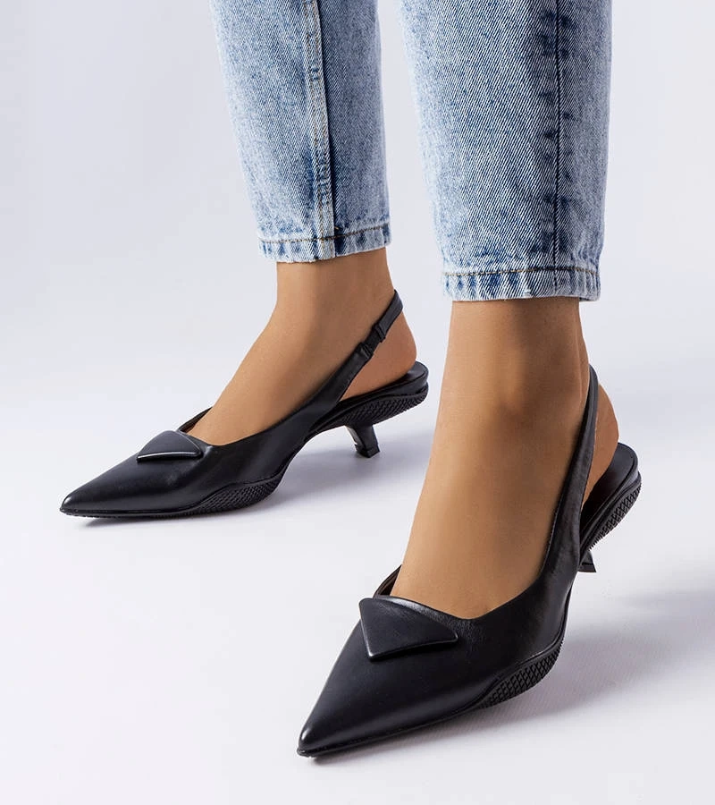 Czarne czółenka z lakierowanym noskiem Duck