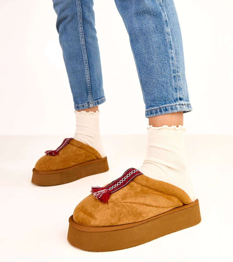 Ciepłe kapcie damskie - obuwie domowe - pantofle