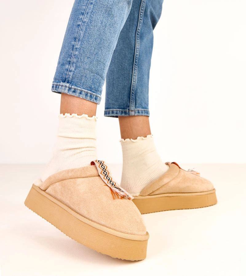 Beżowe kapcie z ozdobnym sznureczkiem Medoro