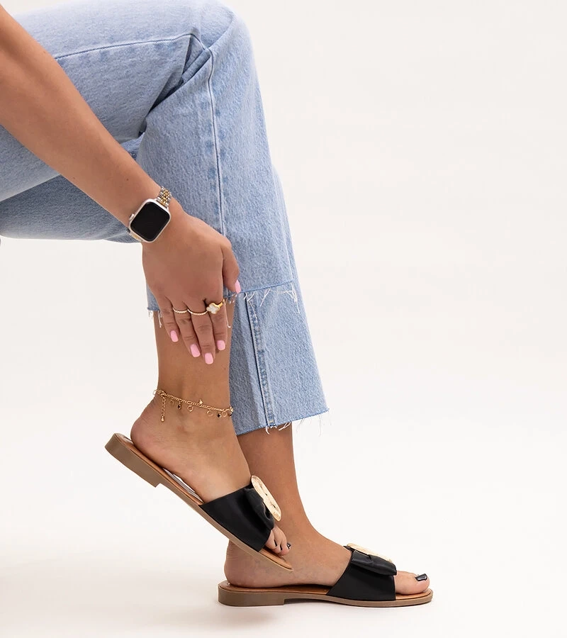 Czarne klapki na niskim obcasie ozdobione cyrkoniami Ulma