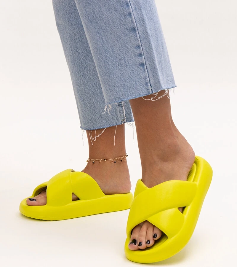 Żółte klapki z matowym łańcuchem Aliyan