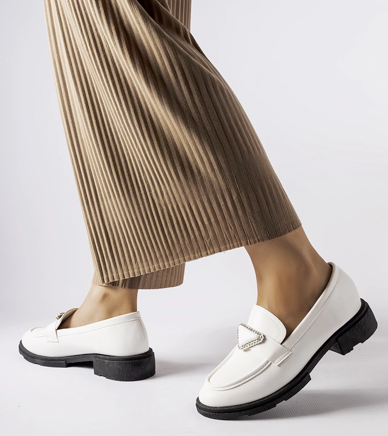 Czarne mokasyny damskie skórzane z cyrkoniami Neuer