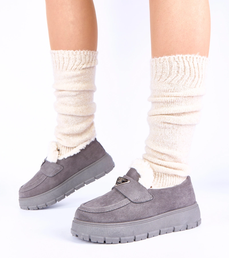 Szare mokasyny na platformie ocieplane futerkiem Kirby