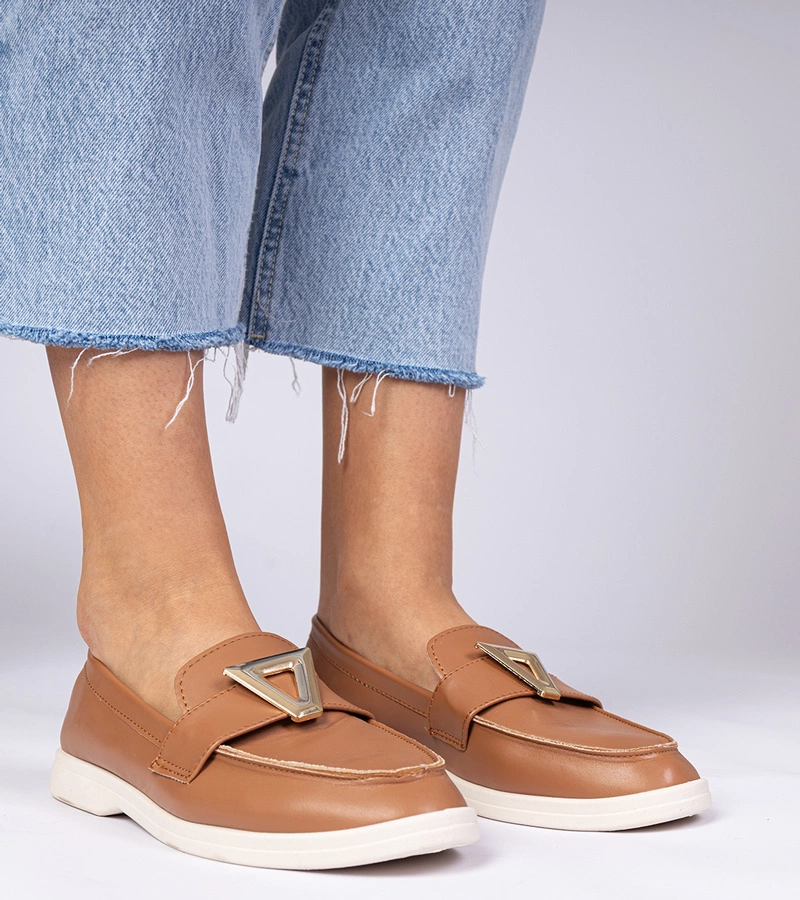 Brązowe damskie mokasyny ze złotą ozdobą Senna