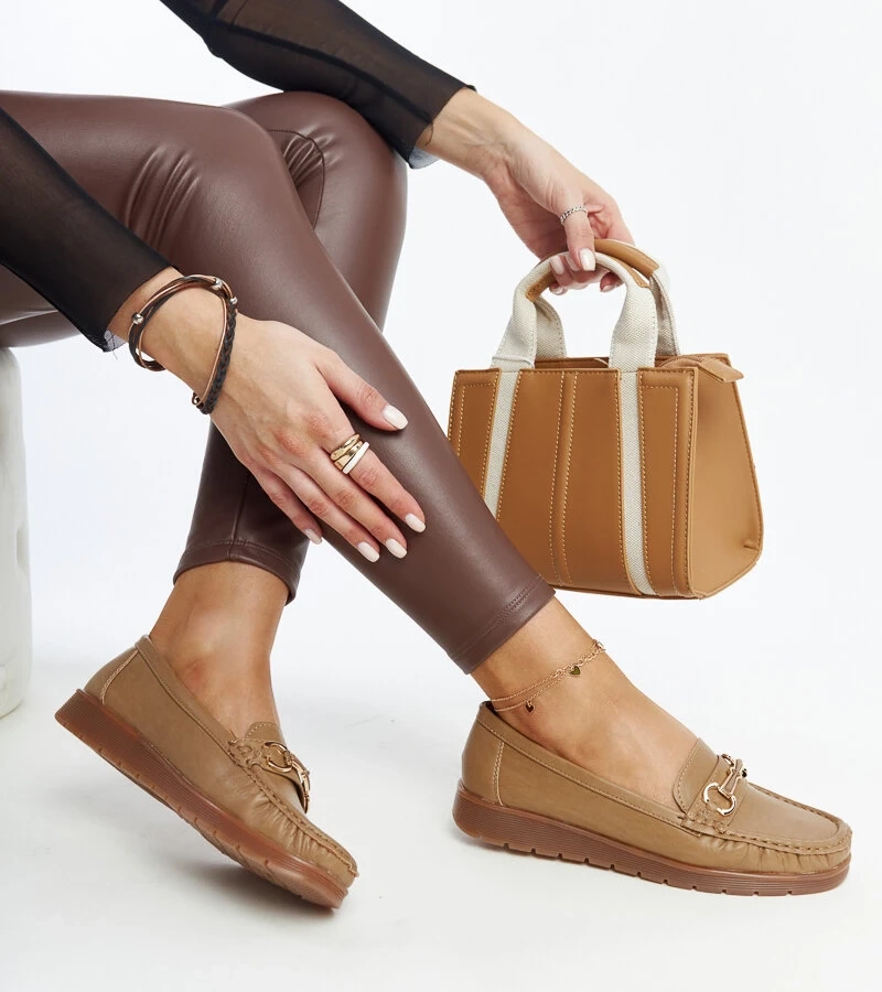 Beżowe mokasyny z ozdobną klamerką Paddy