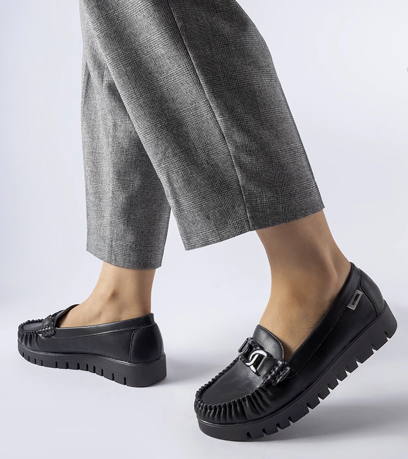 Czarne mokasyny damskie skórzane z cyrkoniami Neuer