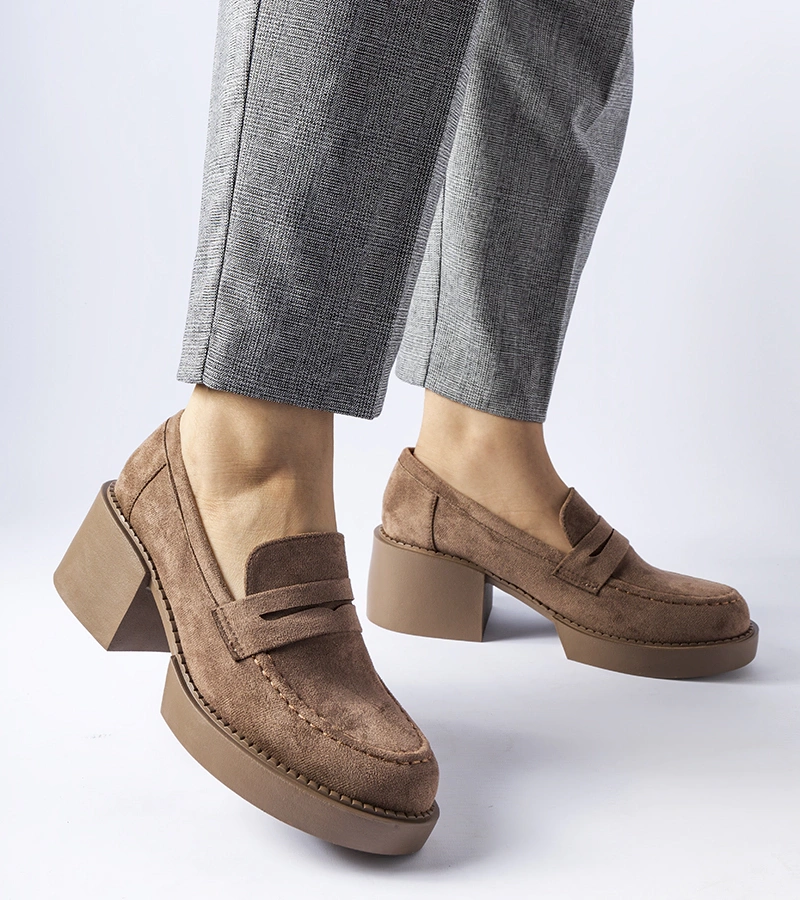 Brązowe mokasyny z klamerką na koturnie Lerino