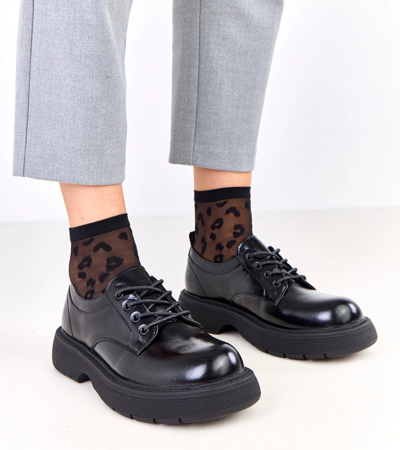 Czarne damskie półbuty z nadrukiem na podeszwie Klowis