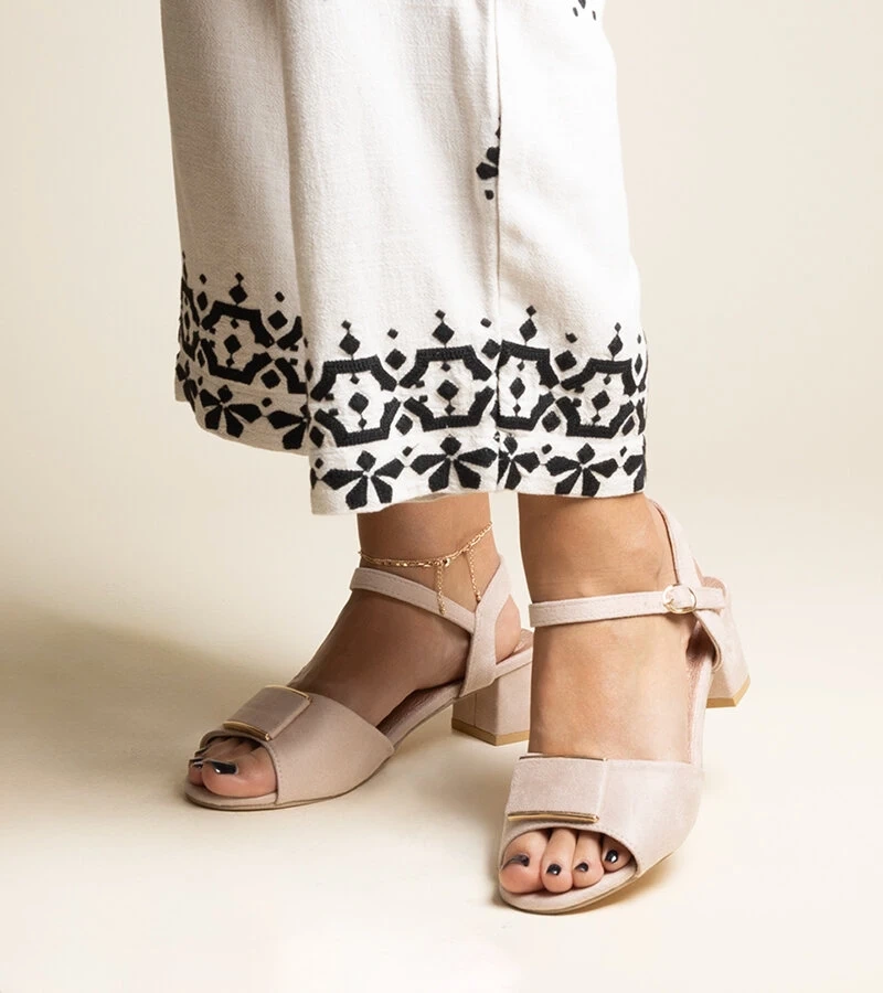 Beżowe sandały na słupku ze skórzaną wkładką Saiha