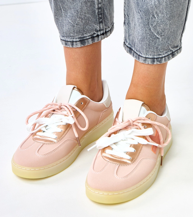 Beżowe sneakersy damskie sportowe ze złotą wstawką Sandra