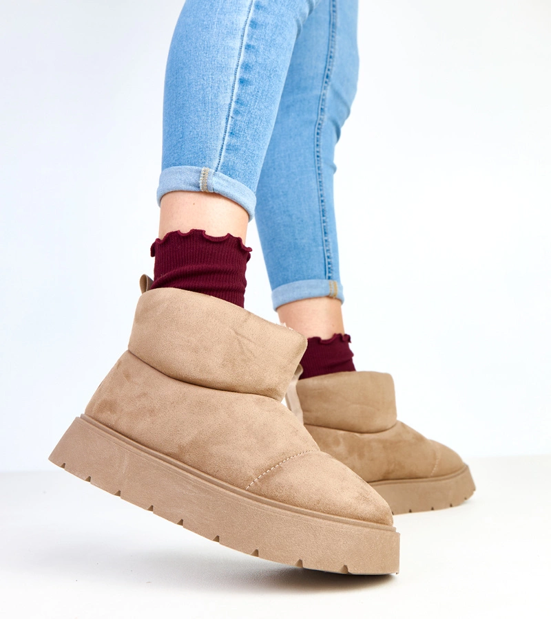 Ciemnobeżowe ocieplane śniegowce na platformie Ribeiro