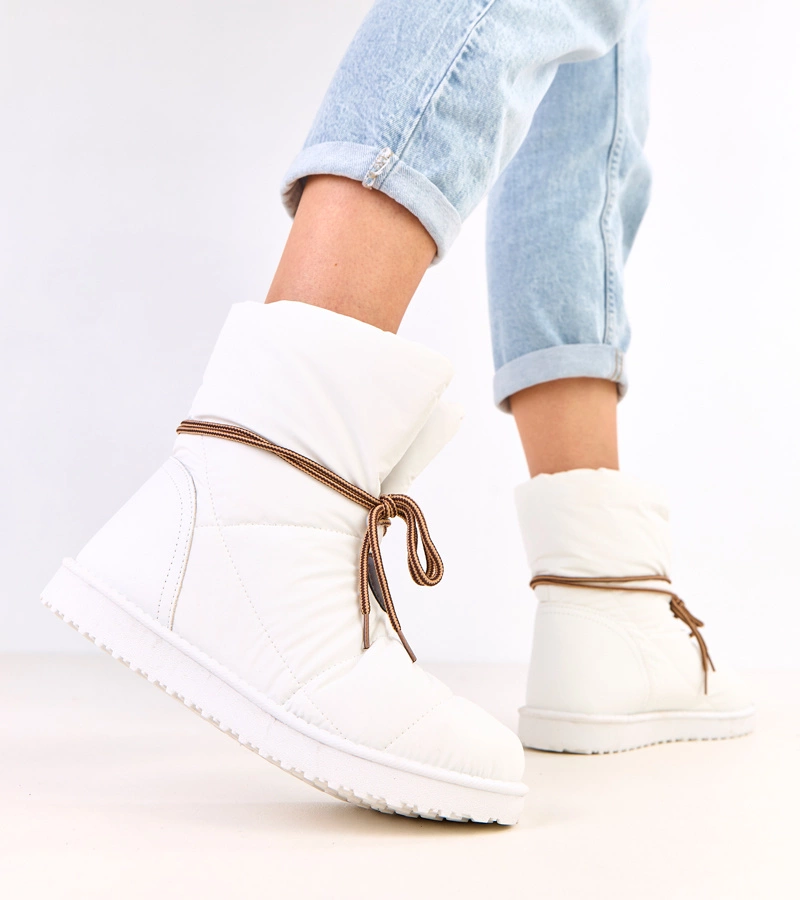 Białe śniegowce damskie z ozdobnym sznurkiem Temira
