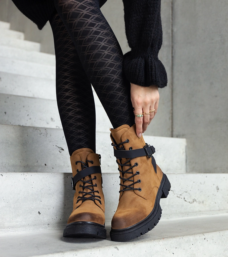 Brązowe ocieplane traperki z przetarciami i paskiem Kneesa