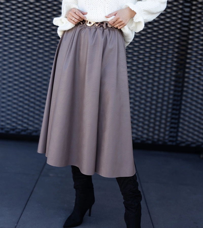 Ciemnobeżowa długa spódnica zdobiona paskiem z motywem zwierzęcym Hanie
