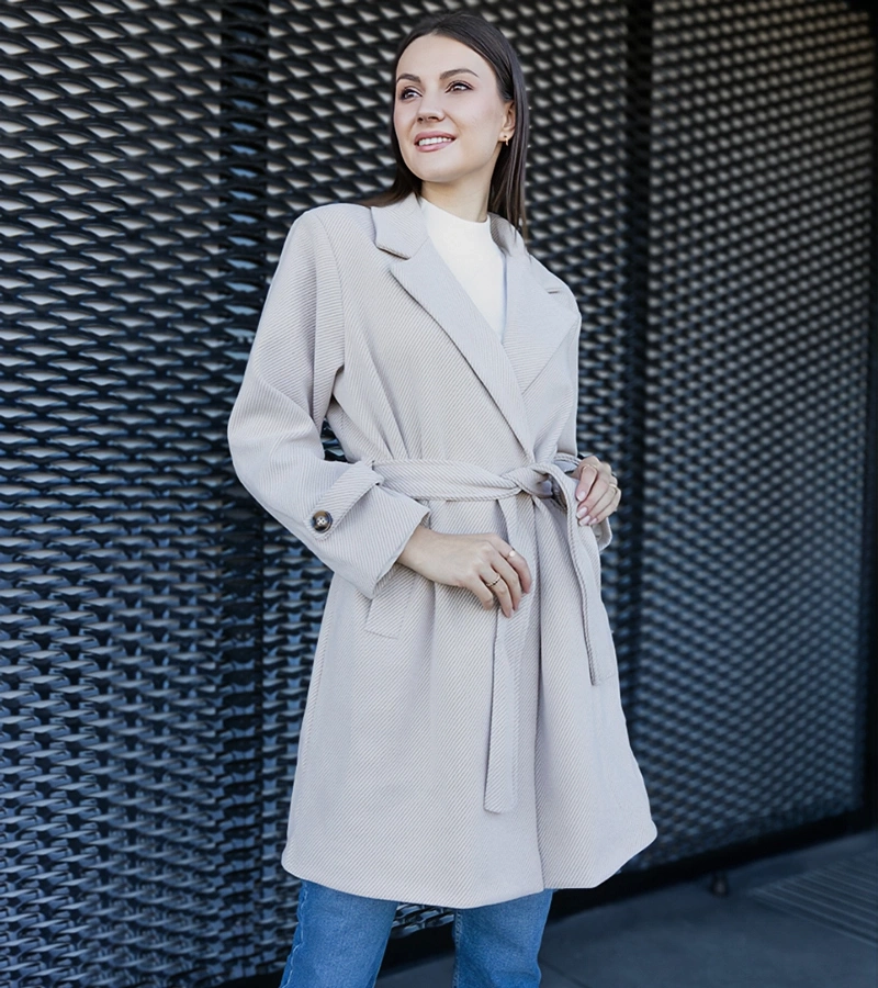 Elegancki beżowy płaszcz wiązany oversize Bahera