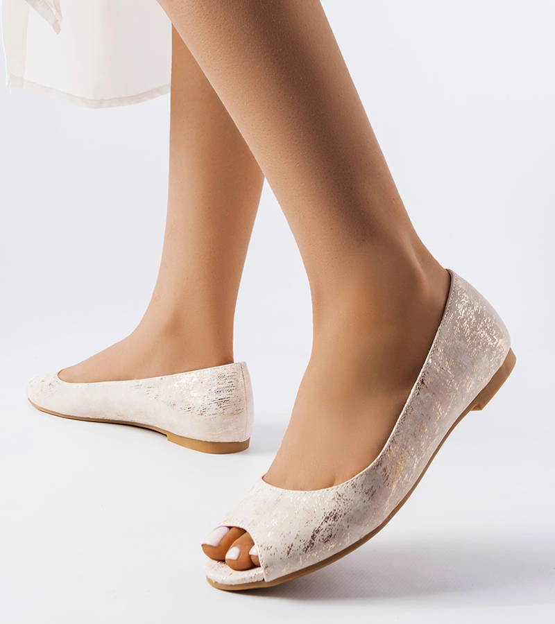 Złote balerinki z otwartym noskiem Lesage
