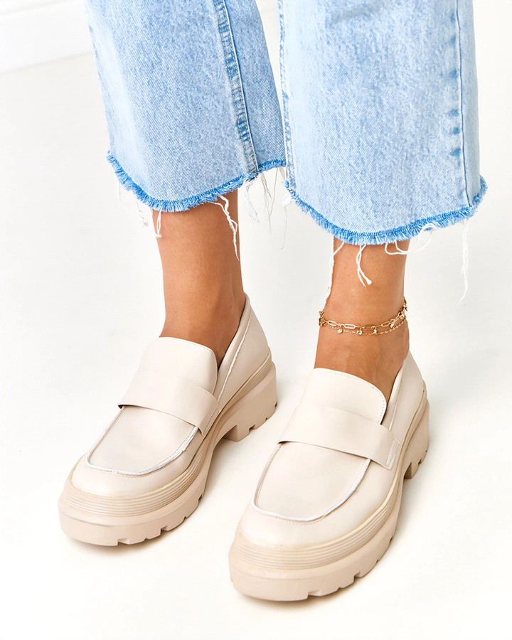 Beżowe klapki zabudowane na płaskiej podeszwie Matila
