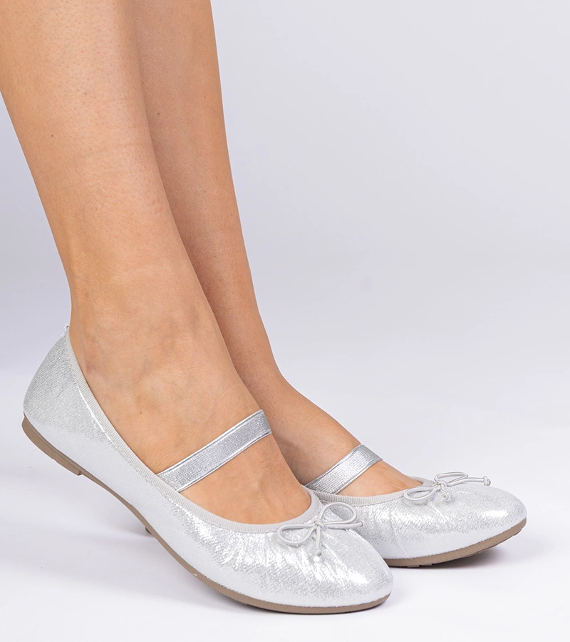 Srebrne damskie balerinki z kokardką Mansy